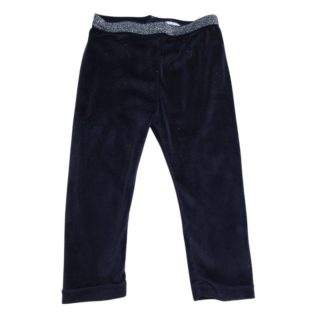 Sötétkék, anyagában és deréknál csillámos plüss leggings.