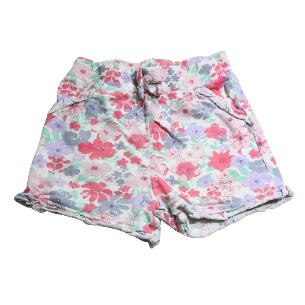Rózsaszín-lila-világoskék virág mintás pamut rövidnadrág.