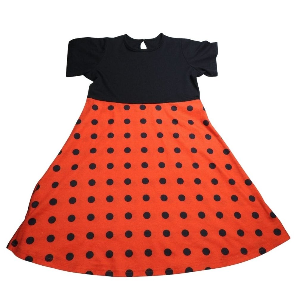 Fekete-piros, rövid ujjú "katicás", pöttyös ruha.