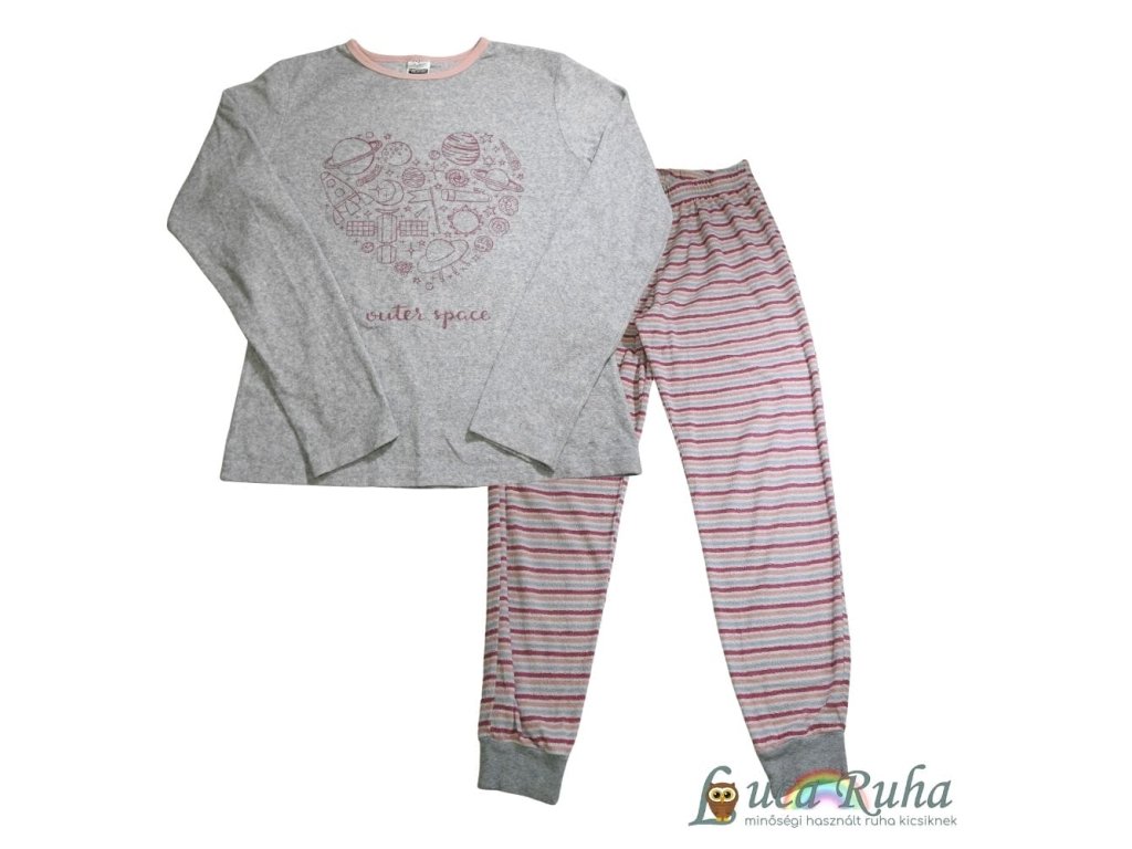 Szürke-rózsaszín, hosszú, frottír pizsama szett.
