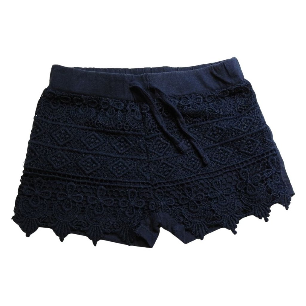Sötétkék pamut rövidnadrág csipkével.