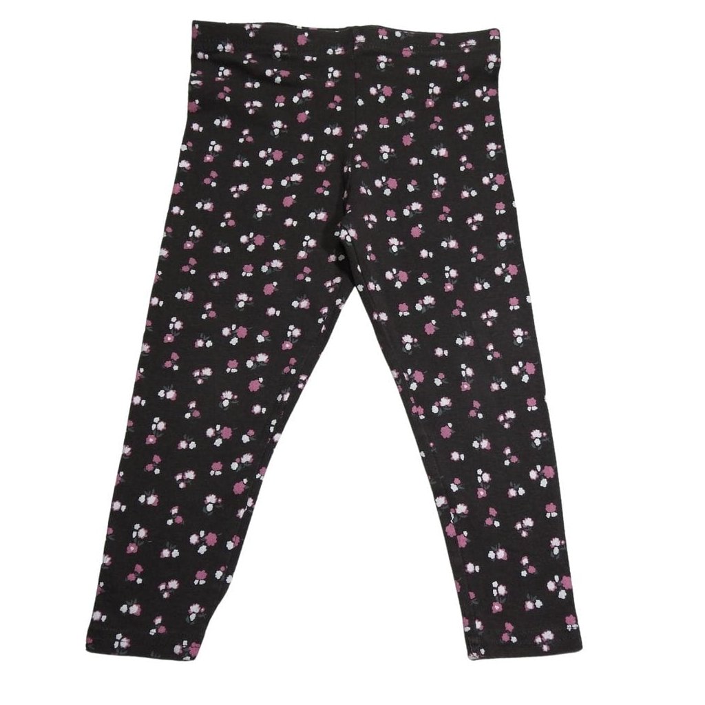 Sötétszürke alapon, színes, rózsaszín virágos mintás leggings.