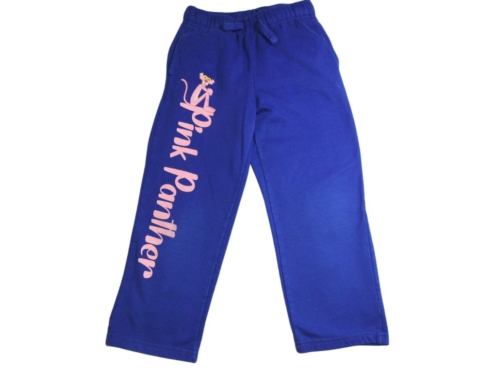 Kék, pamut melegítőnadrág jobb szárán nyomott mintával és felirattal.