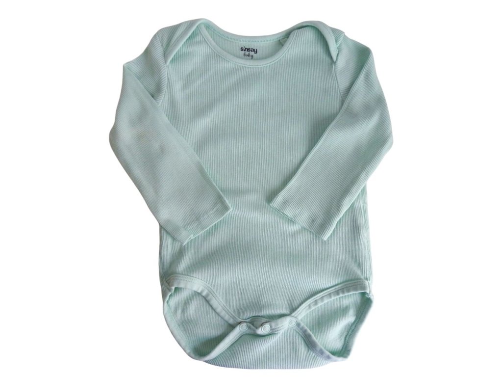 Türkiz, bordázott anyagú hosszú ujjú pamut body.