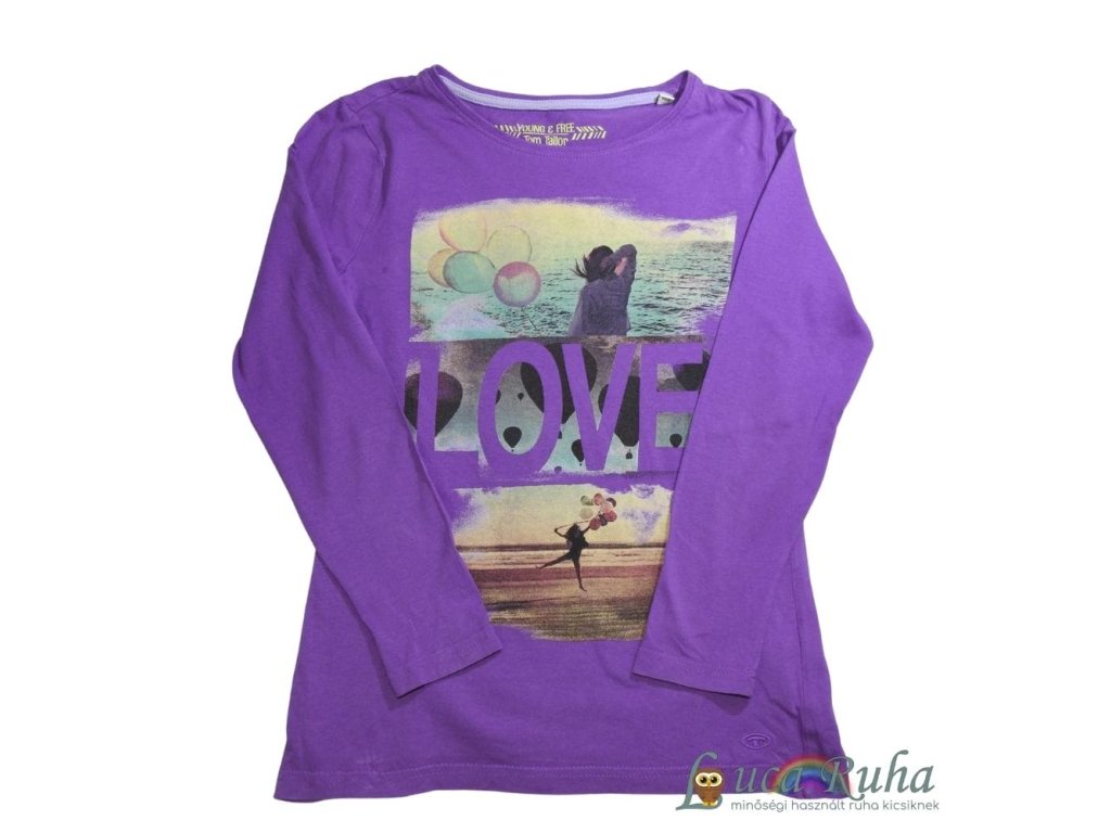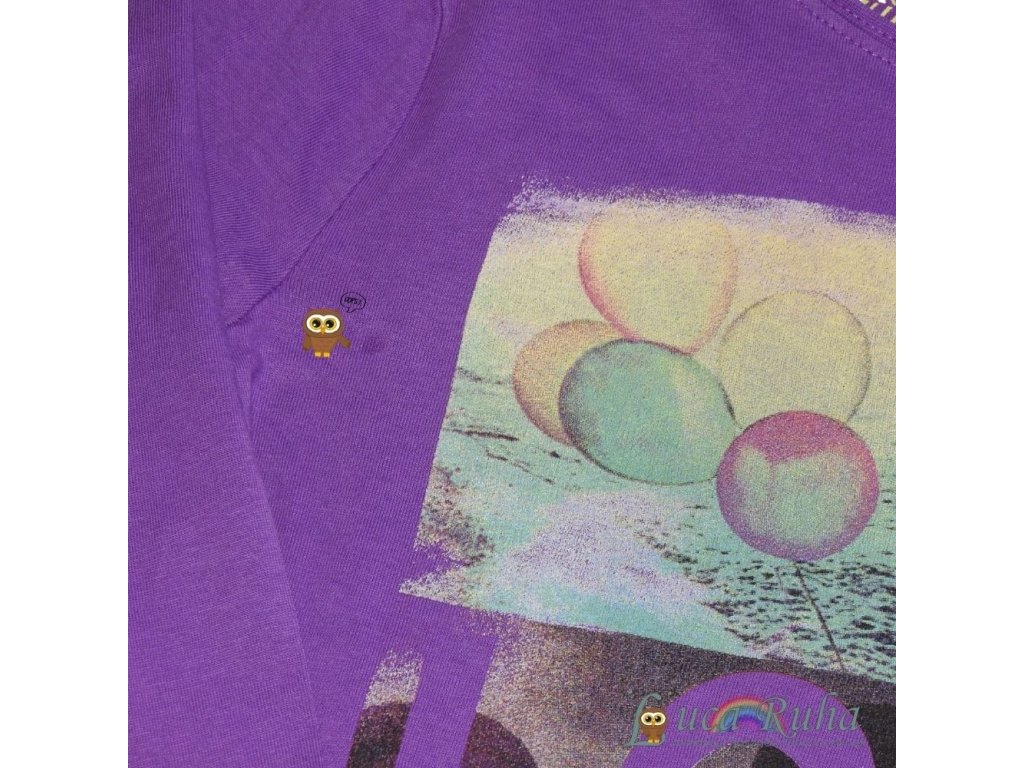 Lila, hosszú ujjú pamut felső nyomott, fényképes mintával.