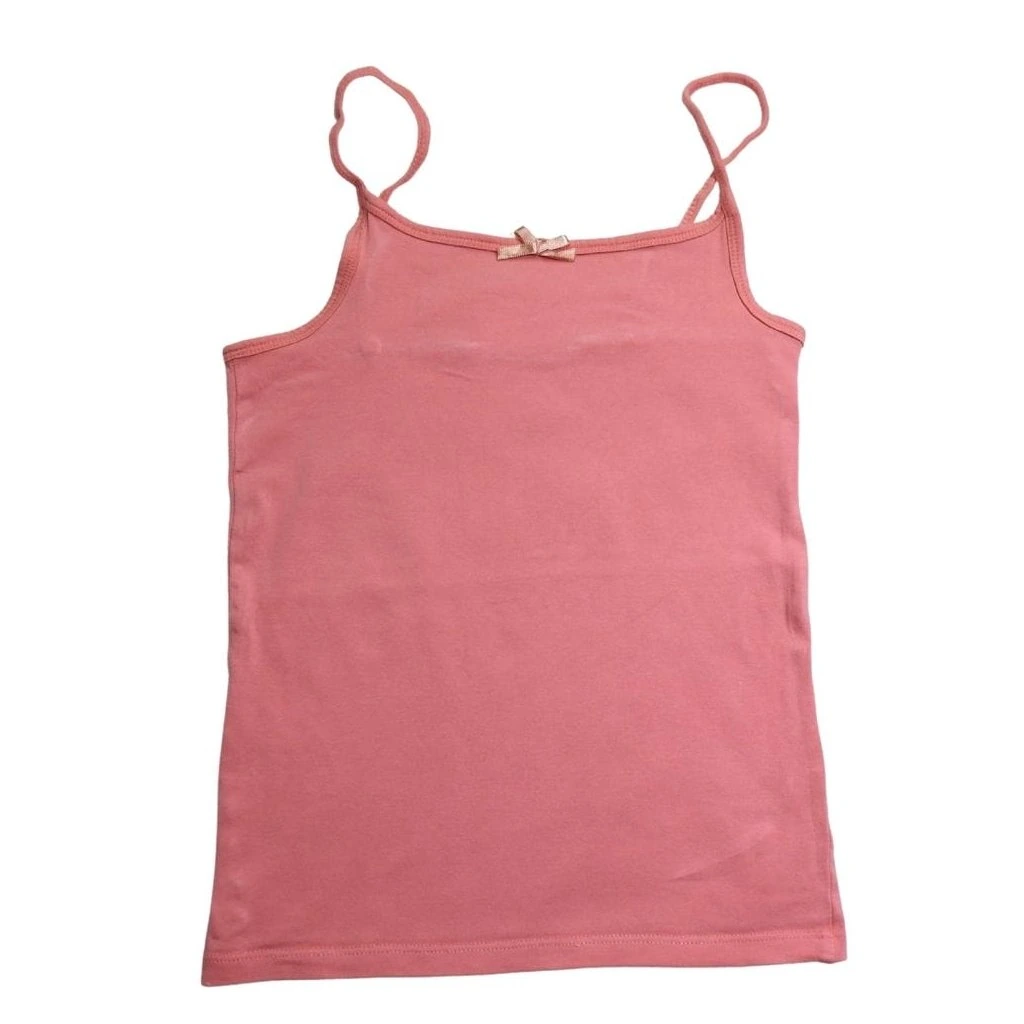 Rózsaszín, spagetti pántos pamut trikó masnival.