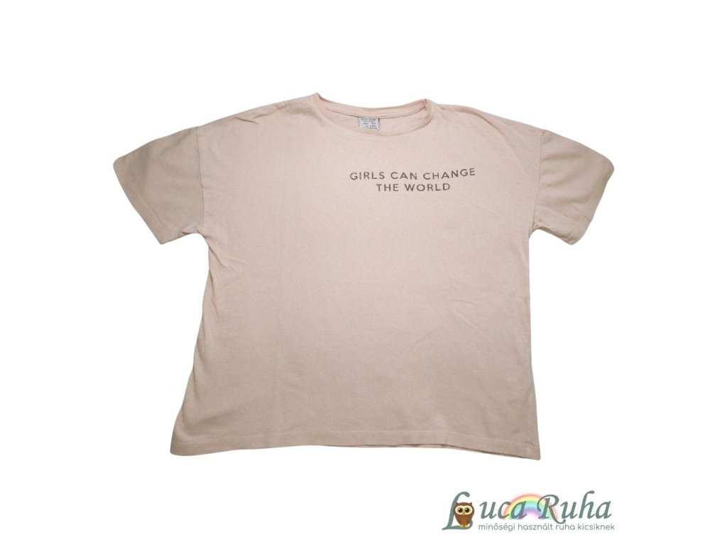 Rózsaszín, rövid ujjú, bőszabású felső mellkasán felirattal.