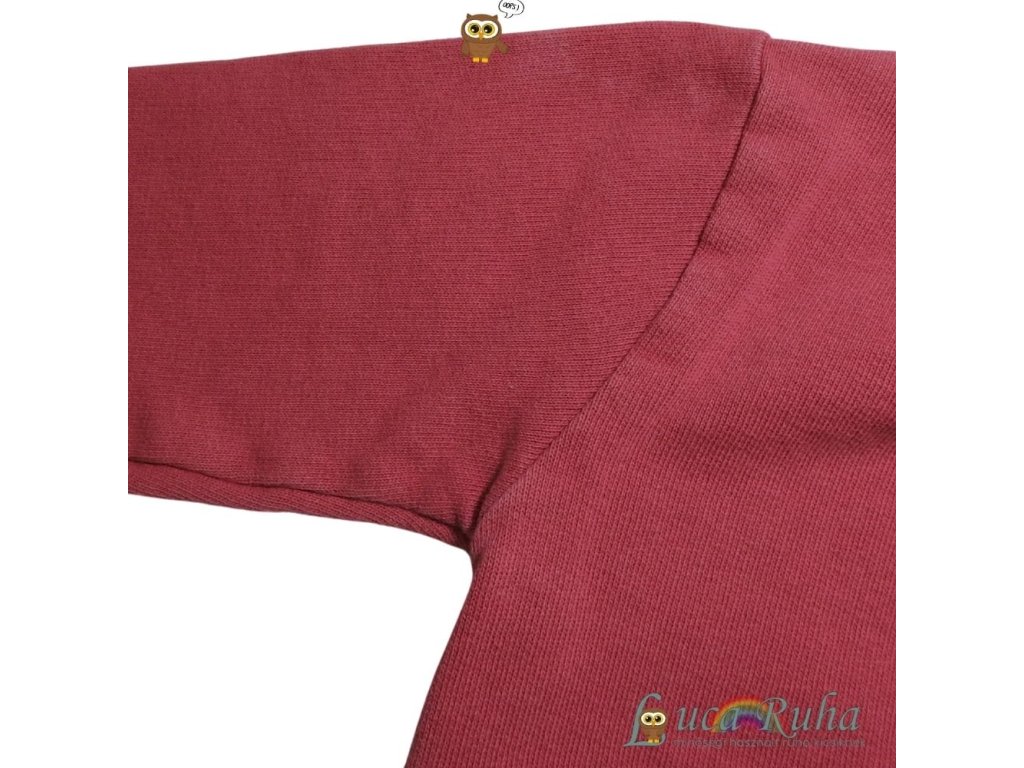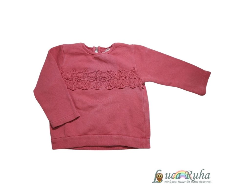 Mályva rózsaszín pamut pulóver, csipkés részletekkel.