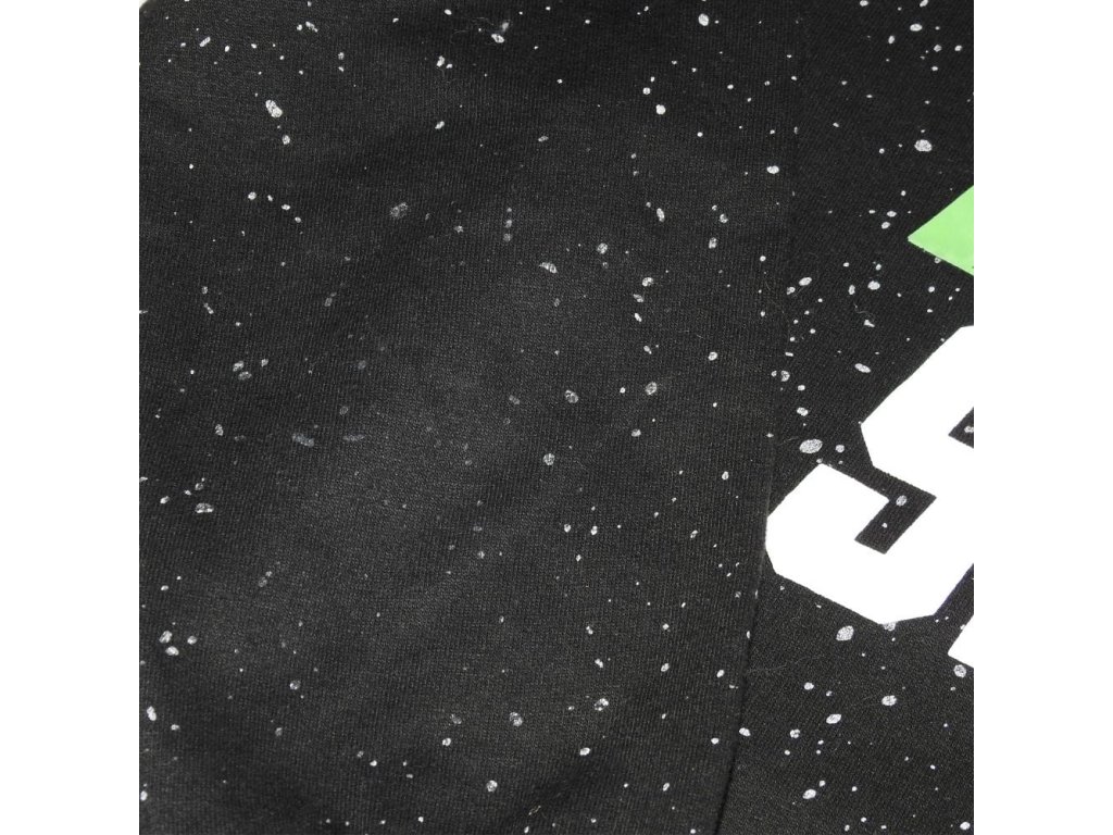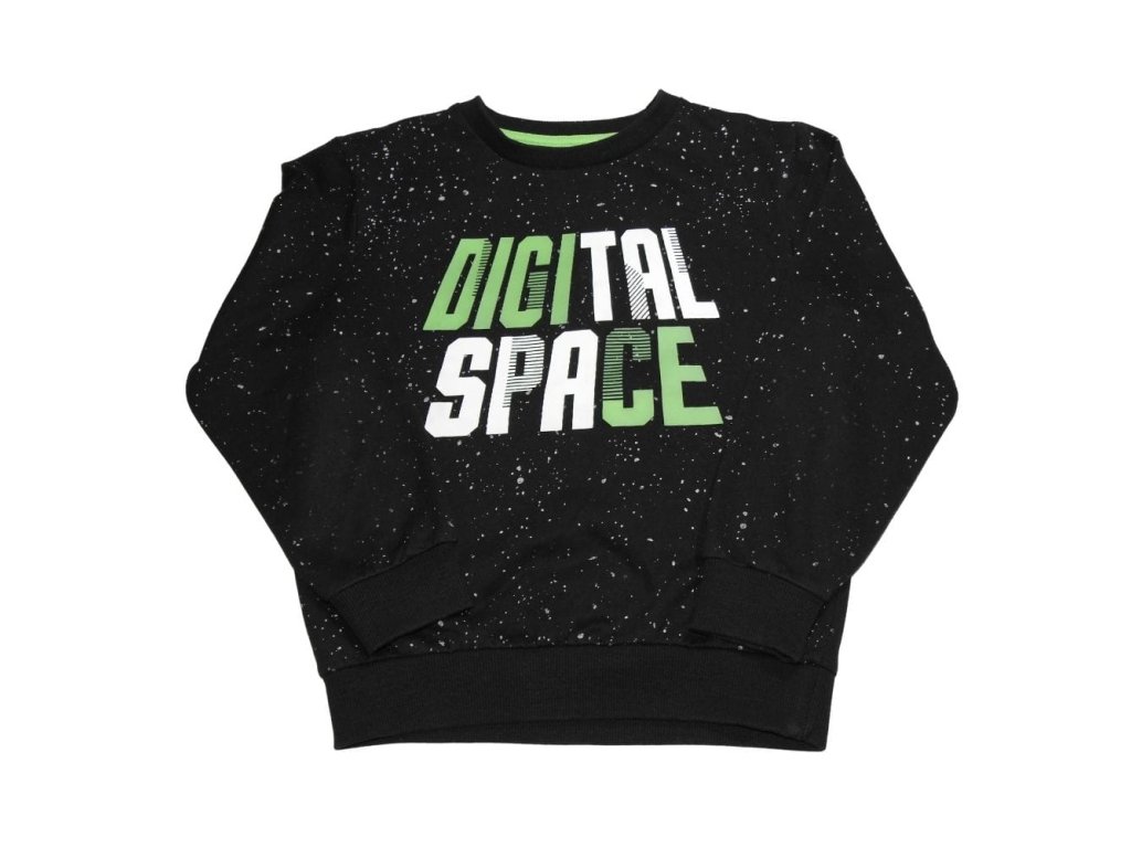 Fekete, mintás pulóver felirattal.