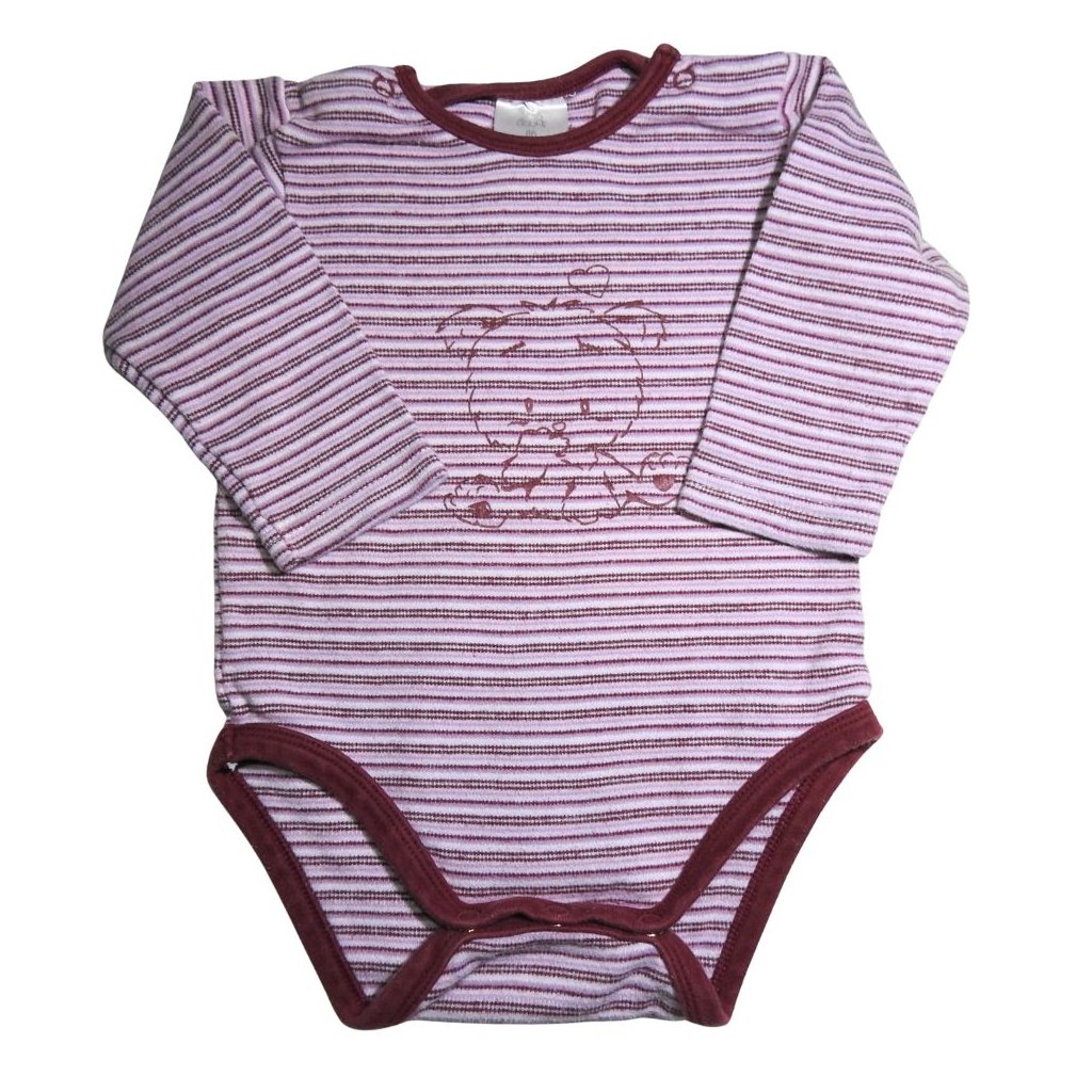 Bordó csíkos, hosszú ujjú pamut body maci mintával.
