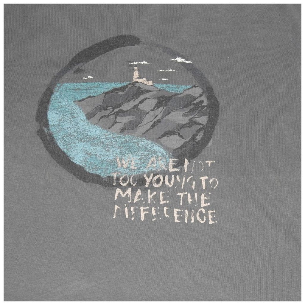 Szürke hosszú ujjú póló elején mintával.