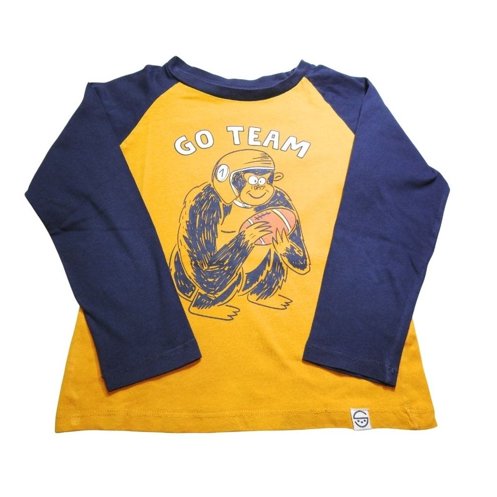 Sárga, sötétkék hosszú ujjú pamut póló, nyomott mintával.