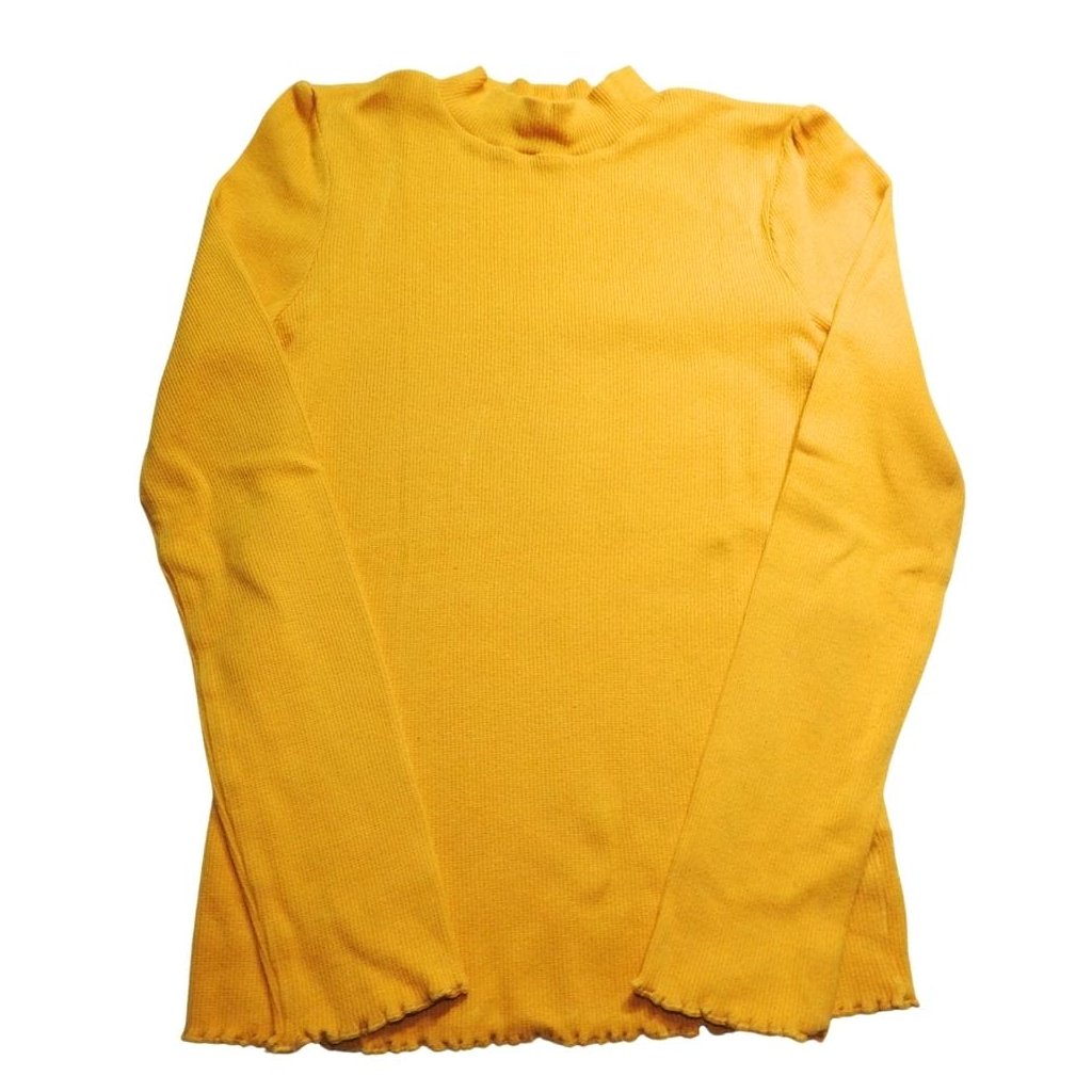 Sárga, hosszú ujjú, bordázott anyagú, magas nyakú pamut felső.
