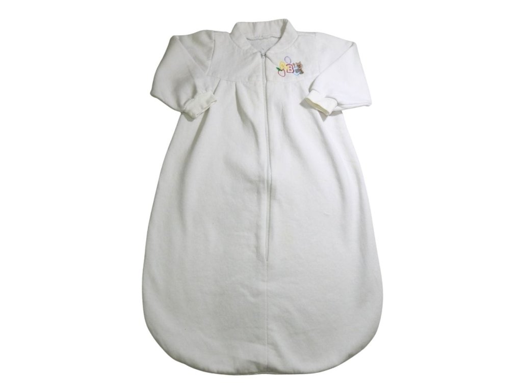 Fehér, hosszú ujjú, vastag, de nem párnázott hálózsák.