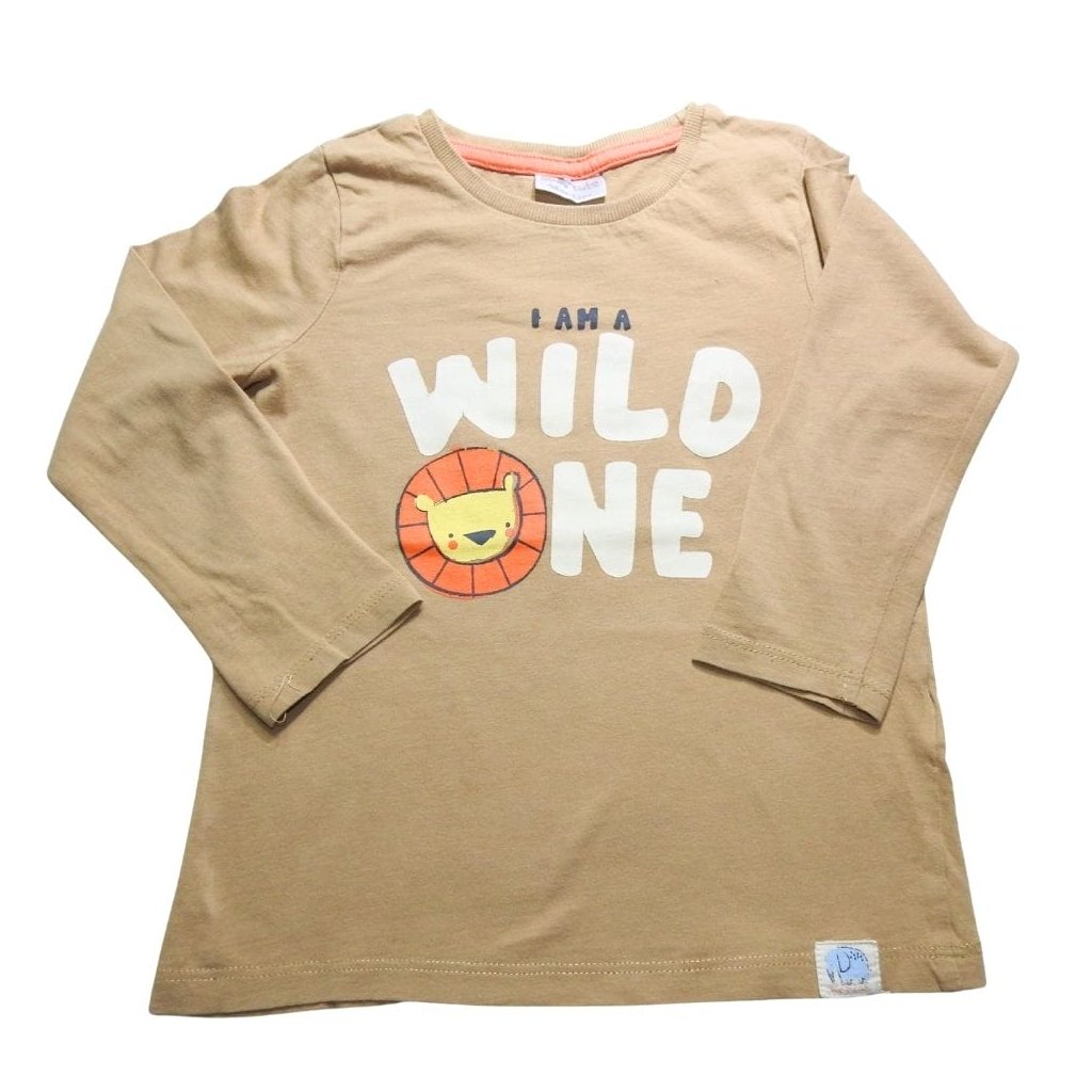 Bézs, hosszú ujjú pamut póló nyomott mintával.
