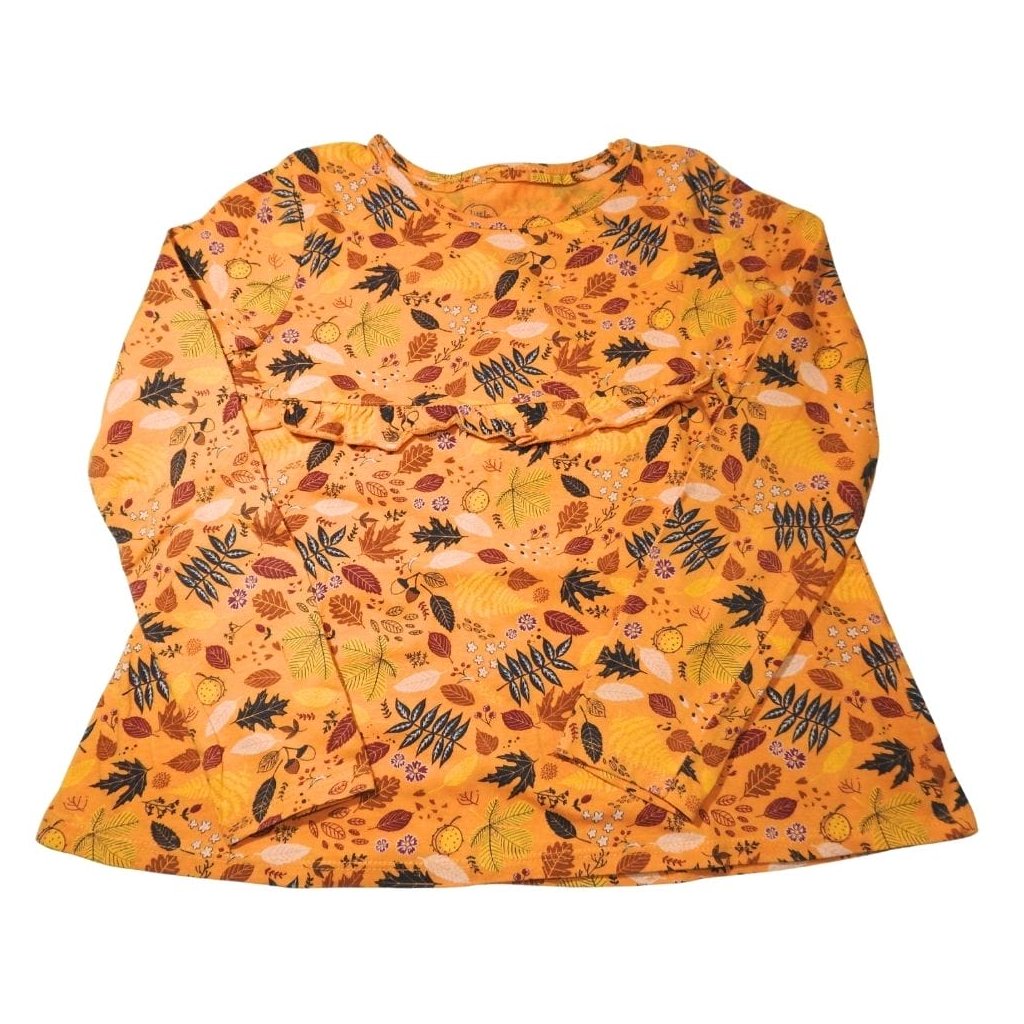 Sárga, hosszú ujjú deréktól bővülő felső, tunika őszi motívumokkal.