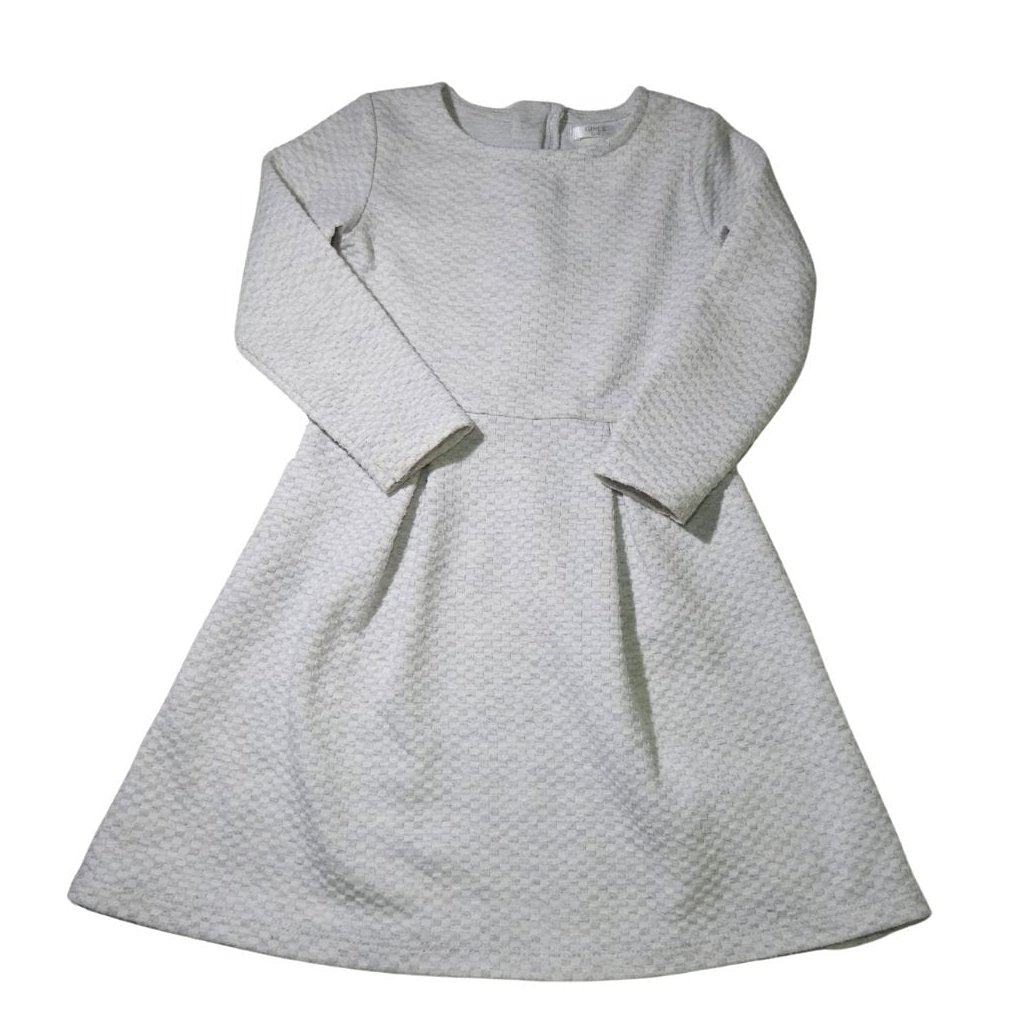Szürke, hosszú ujjú, jacquard kötésű ruha.