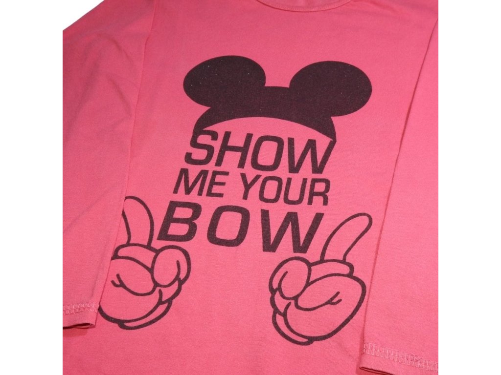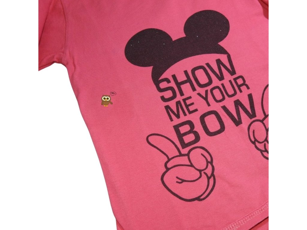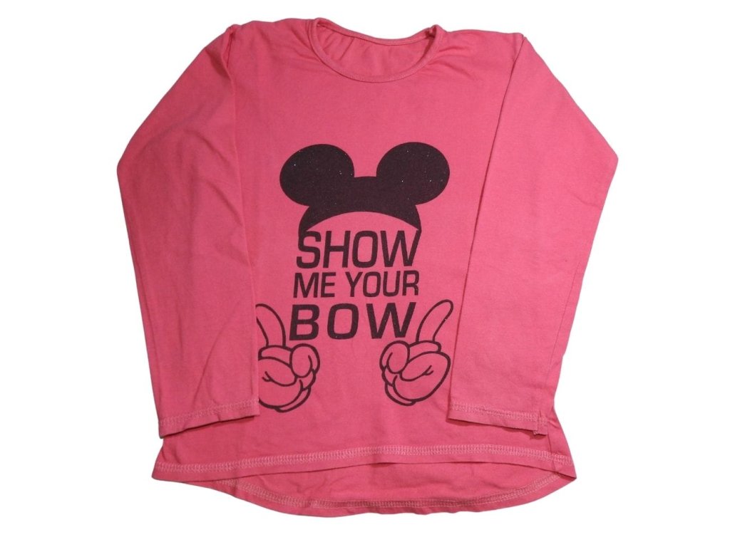 Pink, hosszú ujjú felső fekete, csillámos Minnie motívummal, felirattal.