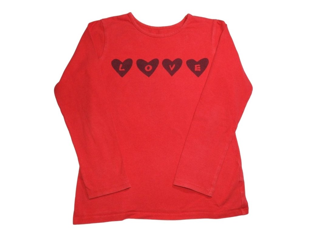 Piros, hosszú ujjú felső mintával, LOVE felirattal.