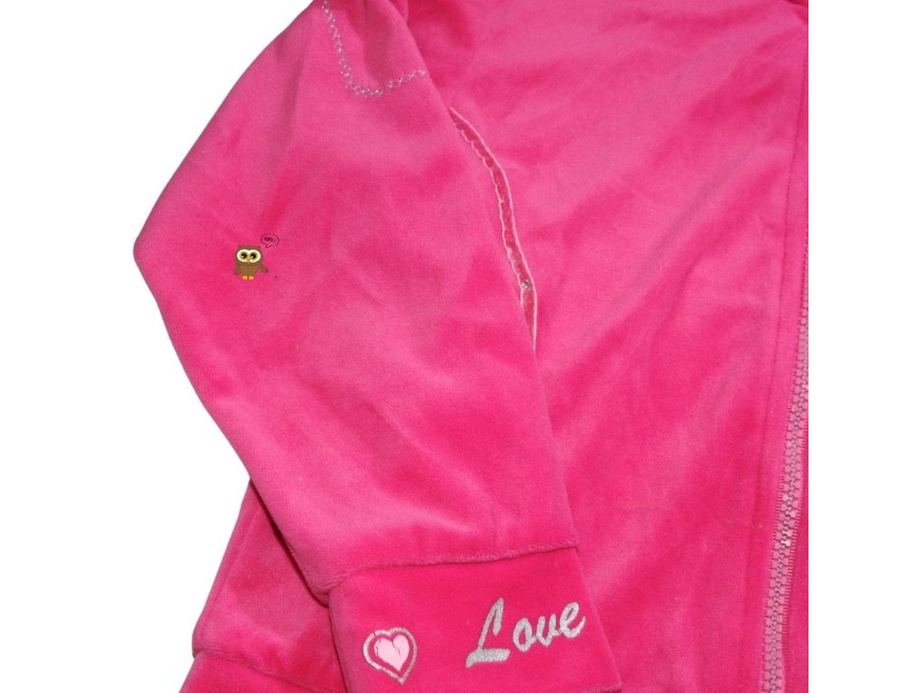 Pink plüss cipzáras pulóver csillámos feliratokkal, strasszokkal, hímzett mintával.
