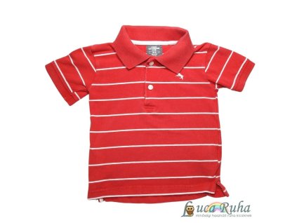 Sötétkék, rövid ujjú pamut felső, pöttyökkel és nyomott mintával, felirattal. Apró tökéletlensége, hogy bal vállán található egy pici lyuk.