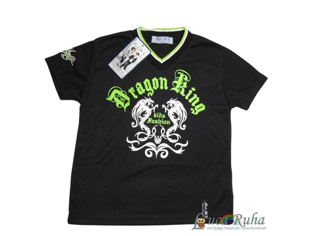 Fekete, rövid ujjú póló sárkányos mintával elől és hátul. Outlet, címkés darab.