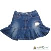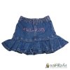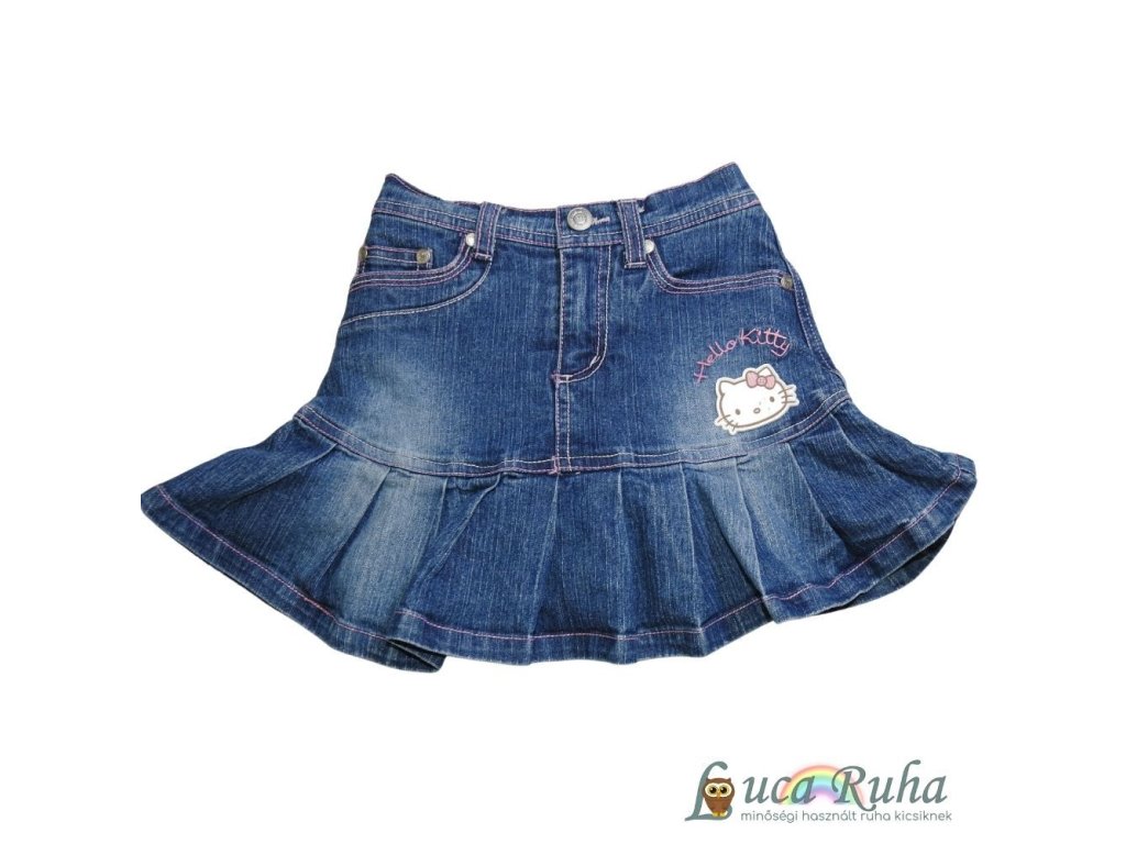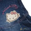 Fodros aljú, kék farmerszoknya Hello Kitty mintával, hátul hímzett felirattal. A szoknyarész alatt rövidnadrág található. Tökéletlensége, hogy a mintán tollvonások vannak.